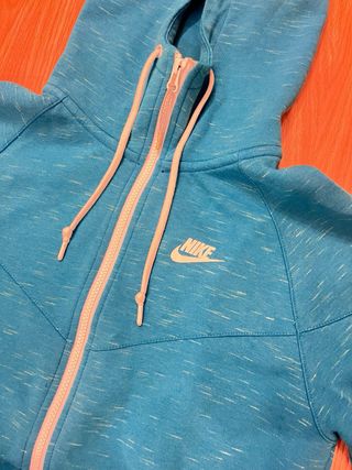 sudadera Nike original en color azul, estilo deportivo y muy cómoda, ideal para entrenar, salir a correr o uso diario. Tiene cremallera completa, capucha con cordones y bolsillos con cierre. ✨ Detalles: • Marca: Nike • Color: Azul con detalles en blanco • Tipo: Sudadera deportiva / hoodie • Cierre: Cremallera completa (full zip) • Capucha ajustable con cordones • 2 bolsillos con cremallera • Logo Nike en el pecho 📌 Estado: Muy buen estado, sin rotos ni manchas (ver fotos reales). 📦 Envío rápido y bien protegida. 💬 Si quieres medidas (largo / pecho) o más fotos, dímelo y te las paso sin problema.