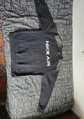 Sudadera Nike Air con un diseño en negro y detalles en gris. Esta nueva, usada 3 veces, medidas: Largo: 70cm/axila-axila: 61cm/ Largo de manga: 78cm - Logo de Nike Air en la parte frontal. - Paneles grises en los hombros.