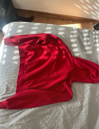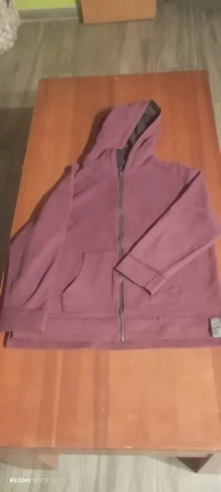 Sudadera con capucha y cremallera completa. - Color burdeos. - Bolsillo canguro. - Puños y bajo elásticos. - Usada pero en buen estado. - De sisa a sisa 50 centímetros. Pone talla 12, pero da más es como una XXS. 56 centímetros de largo desde la parte más alta del hombro (junto a la capucha).