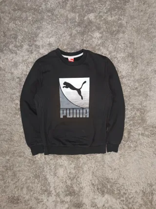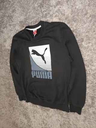 Sudadera clásica negra PUMA, con estampado en tonos grises, de cuello redondo y manga larga. Talla M Hombro 46 Pecho 57 Cintura 50 Cadera 44 Largo 72 Largo manga 66 El color está en bastante buen estado y también la tela. Aunque (añado foto al final) tiene un par de pequeños desgastes debajo del logo y en la manga derecha. No es impedimento para darla una segunda vida, a penas se aprecian😉