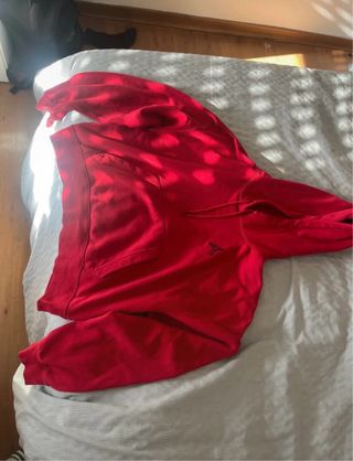 Sudadera con capucha de la marca Jordan en color rojo. Presenta un bolsillo tipo canguro en la parte delantera y cordones ajustables en la capucha. - Logo de Jordan bordado en el pecho.