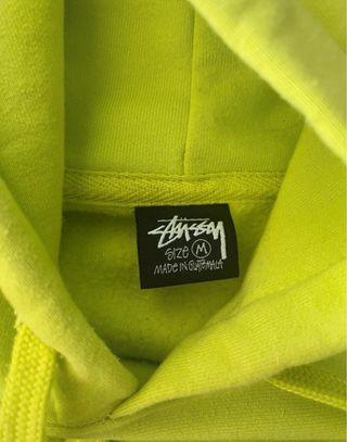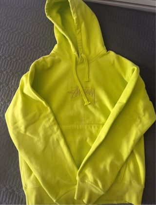 Sudadera Stussy en un llamativo color amarillo neón. Perfecta para un estilo urbano y moderno. - Logo de Stussy bordado en el pecho. - Capucha con cordones ajustables. - Bolsillo tipo canguro delantero.