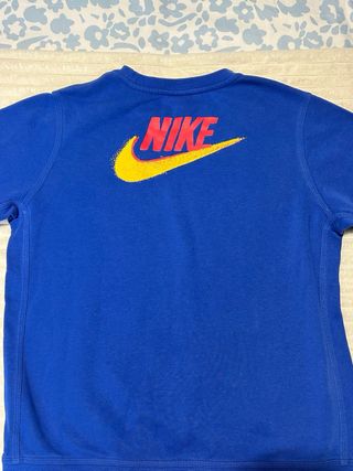 Sudadera de la marca Nike en color azul. Presenta algunas manchas, las cuales estan en las fotos - Logo de Nike bordado en el pecho.