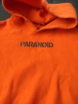 Sudadera con capucha de color naranja brillante. Presenta un diseño moderno y cómodo. - Logo PARANOID en la parte frontal. - Bolsillo canguro. - Puños y cintura elásticos.