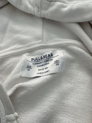 Sudadera del Pull and Bear de color beige con diseño tanto alante como atrás. Talla L.