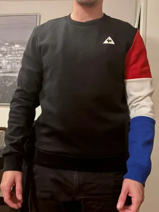 Sudadera con diseño moderno y llamativo. - Mangas con bloques de color rojo, blanco y azul. - Logo de Le Coq Sportif en el pecho.