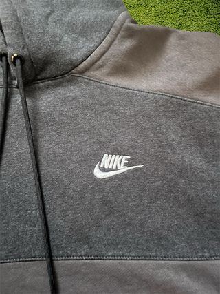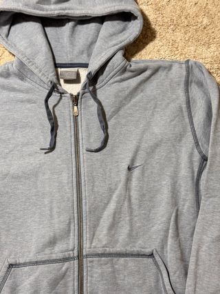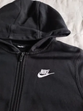 Sudadera con capucha y cremallera completa. - Logo de Nike en el pecho. - Bolsillos delanteros. - Talla XL de niño (aprox 13-14años) Tiene una cosita en una manga, yo creo q es a la altura del codo, q no se quita pero apenas se ve, hay una foto en la galería de fotos.