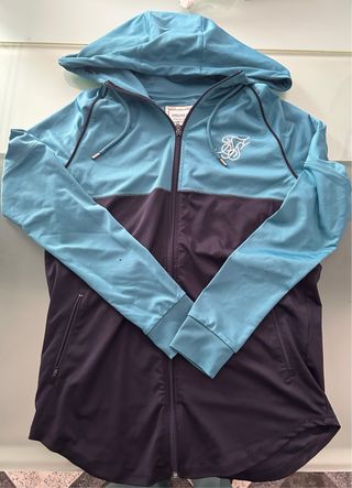 Chaqueta deportiva SikSilk con un diseño moderno y bicolor. - Cierre completo con cremallera. - Capucha ajustable con cordones. - Logo de SikSilk bordado en el pecho. - Bolsillos laterales con cremallera.