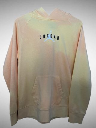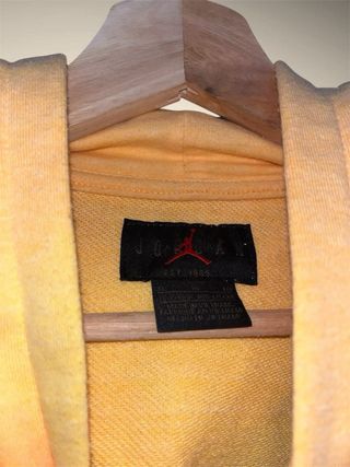 Sudadera Jordan original en tono amarillo pastel / degradado, muy llamativa y diferente. Diseño moderno con logo Jumpman en el pecho y bolsillo tipo canguro. Ideal para outfits urbanos, deportivos o casuales. Tejido suave y cómodo, perfecta para entretiempo o invierno ligero. Muy buen estado, sin defectos visibles. ✔️ Marca: Jordan (Nike) ✔️ Con capucha ✔️ Bolsillo frontal ✔️ Color degradado amarillo/crema ✔️ Estilo streetwear ✔️ Unisex 📏 Medidas: • Ancho (axila a axila): 52 cm • Largo (desde el cuello): 69 cm 📌 Talla aproximada: S / M (revisar medidas) ⸻ 🏷️ #Jordan #JordanHoodie #NikeJordan #SudaderaJordan #Streetwear #ModaUrbana #