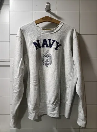 Sudadera de la academia naval americana, Annapolis , emblema en el pecho con el escudo de la academia , 90% algodón 10% poliéster , hecha en Estados Unidos Talla L ver medidas en fotos Usada , cuello estirado , ver fotografías TAGS: Made in USA fabriqué aux États-Unis knitted preppie preppy vintage army armee militaire U.S.A. militare fatigue utility navyus rrl 90's 00's Pullover sweater jumper reverse weave sweatshirt Ivy league USNA naval academy midshipmen