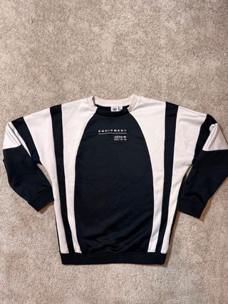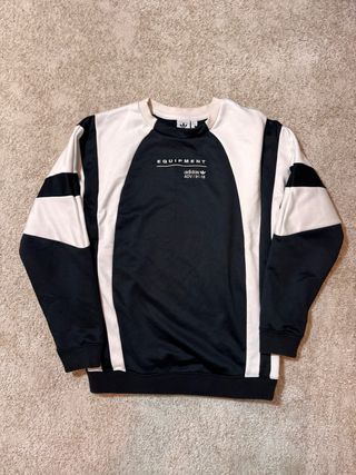 Sudadera Adidas con diseño deportivo. - Color principal negro con detalles en blanco. - Logo de Adidas Equipment ADV en el pecho.