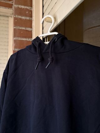 Sudadera de corte oversize con capucha y cordones. - Bolsillo tipo canguro. - Puños y bajo elásticos. Talla XL , Muy buen estado,de hombro a hombro 66 cm , largo 72 cm