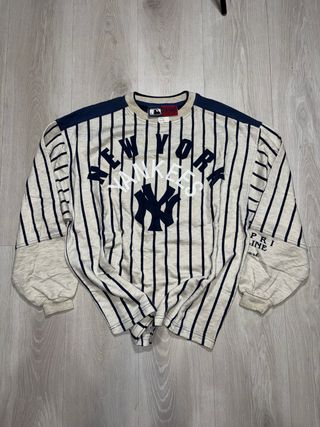 Sudadera blanca con estampado gráfico. Marca Lefties talla XL, en buen estado - Diseño Around New York. - Incluye nombres de distritos de Nueva York.