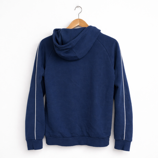 Sudadera con cremallera completa y capucha. Xk de niño o m para adulto - Diseño con detalles en azul y negro en las mangas. - Logo de Nike bordado en el pecho. - Bolsillos delanteros.