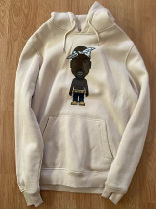 Sudadera con capucha de Jordan en color blanco roto. - Estampado de figuras y letras. - Bolsillo tipo canguro. - 100% original. - Muy buen estado.