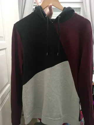 Sudadera con diseño moderno en bloques de color. - Mangas y capucha en negro. - Paneles laterales en color vino. - Parte frontal inferior en gris.
