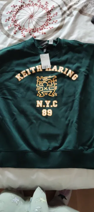 Sudadera con diseño gráfico de Keith Haring. - Color verde oscuro. - Estampado frontal de Keith Haring. - Cuello redondo. Nueva, sin estrenar