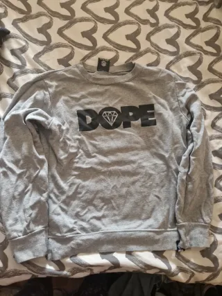 Sudadera gris con estampado de la marca Dope. - Diseño con la palabra DOPE y un diamante. - Manga larga. - Cuello redondo.