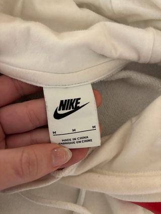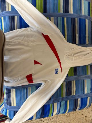 Sudadera con capucha de la marca Nike. - Diseño en color blanco. - Detalles en color rojo. - Logo de la marca visible usada 1 vez solo