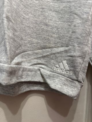 Sudadera de Adidas en color gris, talla XS. Presenta un diseño moderno y cómodo. - Mangas largas con las icónicas tres rayas blancas. - Logo de Adidas en la parte inferior. - Cuello redondo.