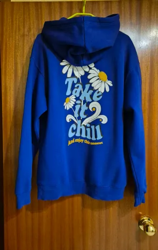 Chaqueta tipo sudadera con cremallera y capucha en color azul. Chaqueta talla L. Solo se realizan envíos 📦.