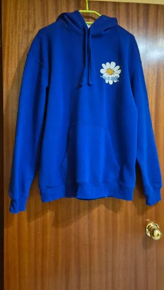 Sudadera relaxed fit talla M, es de algodón y poliéster lleva capucha, los bajos y puños son ajustables y mide 72 cm de largo, 55 cm de hombros y 58 cm de sisa. Está nueva.
