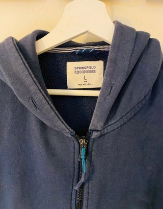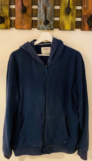 Sudadera/ chaqueta con cremallera y capucha. Mide desde el hombro hasta la cintura 67cm. Usada pero bien conservada, no tiene ningún roto.
