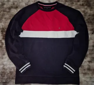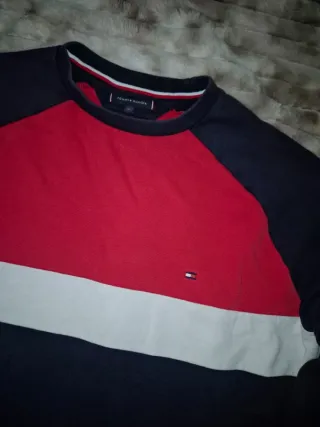 Sudadera original Tommy Hilfiger en diseño tricolor clásico (rojo, azul marino y blanco) con logo bordado en el pecho. Modelo muy reconocible de la marca, estilo limpio y deportivo a la vez. Perfecta para looks casual, streetwear o para combinar con vaqueros y sneakers. ✔️ Logo bordado original ✔️ Colores vivos y bien conservados ✔️ Puños y cuello en perfecto estado ✔️ Sin manchas ni roturas Prenda de calidad premium, cómoda y fácil de combinar. Es de esas sudaderas que elevan el outfit sin esfuerzo. Ideal para otoño/invierno o noches frescas. 📩 Si necesitas medidas exactas, te las paso sin problema.