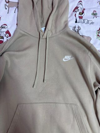 Sudadera con capucha de la marca Nike en color beige. Presenta un diseño clásico con bolsillo canguro. - Logo de Nike bordado en el pecho. - Cordones ajustables en la capucha. - Tejido suave y cómodo.