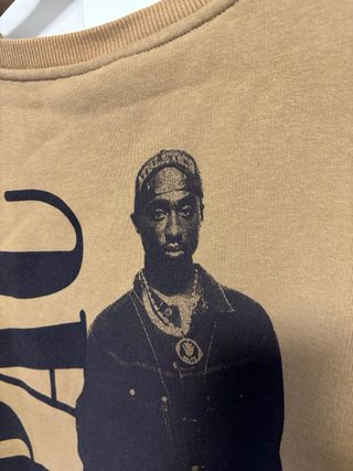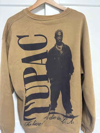Sudadera con estampado de Tupac Shakur. - Diseño frontal con imagen y texto Tupac. - Frase To live & die in L.A. en la parte inferior.