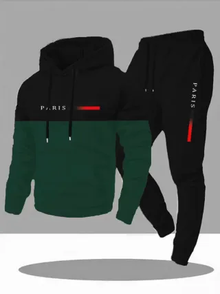 Conjunto deportivo de dos piezas para hombre. - Sudadera con capucha y bolsillo frontal. - Pantalón de chándal. - Diseño bicolor - afelpado calentito