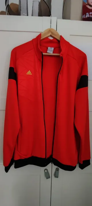 Sudadera deportiva Adidas. - Color principal naranja - Detalles en negro en mangas y cintura. - Logo de Adidas en color amarillo. Sudadera talla L ,se encuentra en perfectas condiciones .Muy ligera .Mucho más bonita al natural