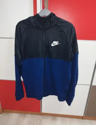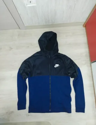 Sudadera con capucha de la marca Nike. - Diseño bicolor en negro y azul. - Cierre de cremallera frontal. - Capucha ajustable con cordones.