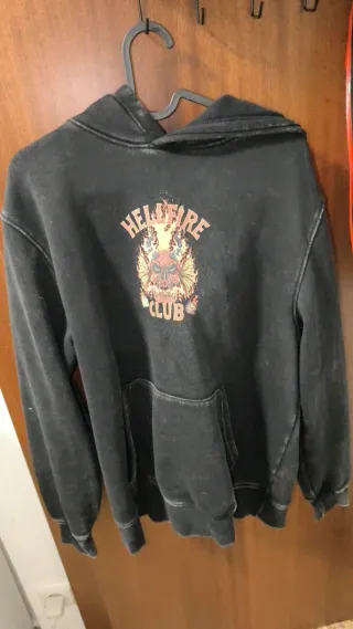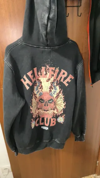 Sudadera con el logo del Hellfire Club. - Diseño estampado en la parte frontal. - Capucha. - Bolsillo canguro.