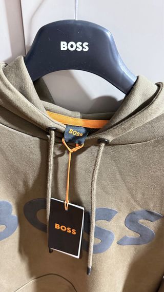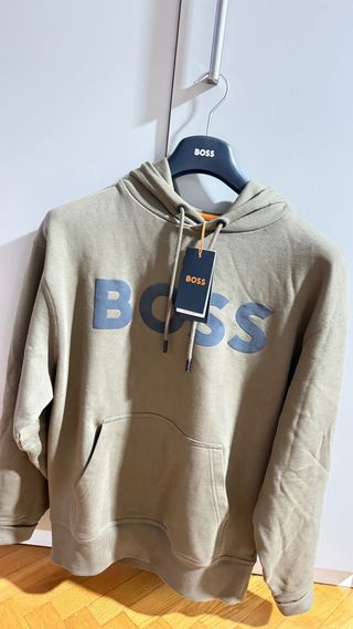 Sudadera con capucha de la marca Boss. Presenta un diseño moderno y cómodo. - Color gris verdoso. - Logo de la marca en el pecho. - Bolsillo frontal tipo canguro. - Capucha con cordones ajustables.