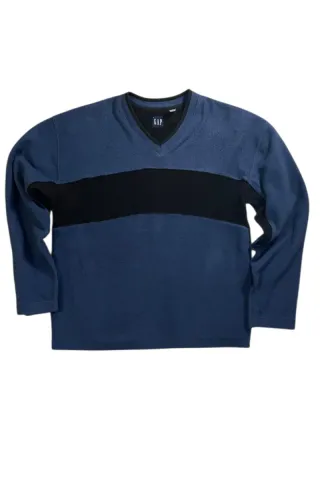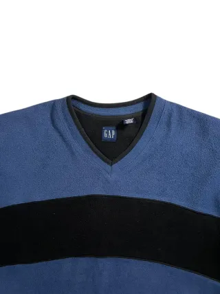 Sudadera de manga larga con cuello en V y diseño de bloques de color. - Banda horizontal negra en el pecho. - Cuello y puños elásticos.