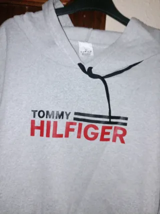 Sudadera con capucha de Tommy Hilfiger. - Color gris jaspeado. - Logo de la marca en el pecho. - Cordones negros para ajustar la capucha.