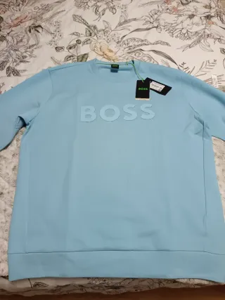 Sudadera de la marca BOSS en color azul, completamente nueva. - Diseño con logo en relieve en la parte frontal. - Cuello redondo. - Manga larga.