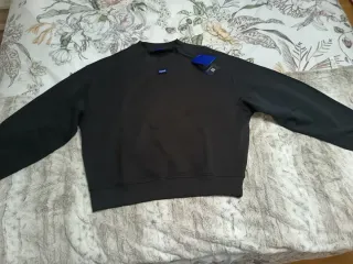 Sudadera de manga larga con logo. La compre por talla M, pero siempre me ha ido corta, entonces la he llevado 3 o 4 veces. Yo diría que es mejor para gente que tenga talla S. - Cuello redondo. - Diseño con logo bordado en el pecho.