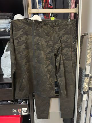 Conjunto de chándal con estampado de camuflaje. - Sudadera con capucha y cremallera. - Pantalón con cordón en la cintura.