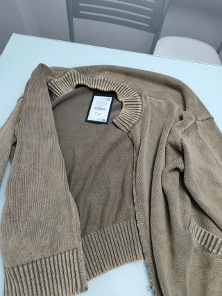 Chaqueta de punto de la marca Pull and Bear en color marrón. Presenta un diseño moderno y cómodo. - Cuello alto acanalado. - Cierre de cremallera. - Bolsillos laterales. - Puños y bajo elásticos.