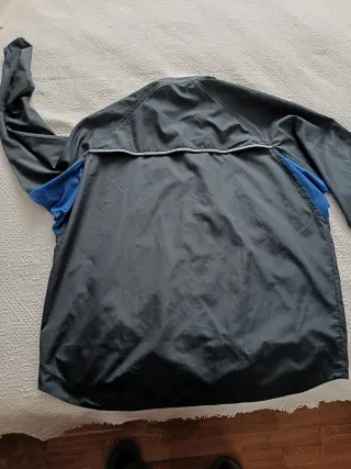 Chaqueta deportiva con un diseño moderno y cómodo. -Usada pero en muy buen estado.. - Paneles en color gris y negro. - Banda horizontal blanca en el pecho. - Logo de Nike bordado.