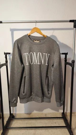Sudadera de estilo casual con logo. - Diseño con cremalleras laterales, una de ellas está rota. - Cuello redondo.