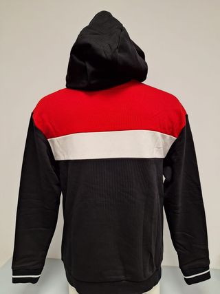 SUDADERA YAMAHA REVS UNISEX SPECIAL EDITION con diseño tricolor y logo de Yamaha. - Diseño de bloques de color: rojo, blanco y negro. - Capucha con cordones. - Bolsillos laterales con cremallera. - Puños y bajo acanalados.