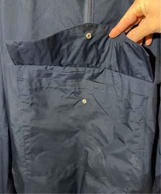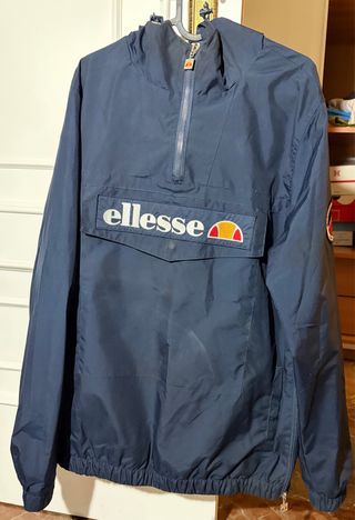 Chaqueta ellese, le he dado poco uso. Tiene dos bolsillos a cada lado y a parte uno grande en el medio. Se descosió la parte de la axila izquierda, pero como se le en la foto, lo cosí y a penas se nota.