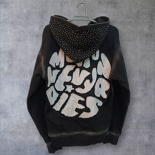 ✨ Sudadera brutal estilo streetwear ✨ Sudadera negra con diamantes decorativos en la capucha que le dan un toque único. Cremallera completa hasta la capucha, se puede cerrar totalmente para un look muy urbano y diferente. 🎨 Letras estilo graffiti tanto por delante como por detrás. 🧪 Efecto decolorado tipo ácido en las costuras, detalle que marca la diferencia. 🖤 Ideal si te gusta destacar y llevar algo que no lleva todo el mundo. Medidas: largo manga 62 cm - ancho hombros 54'5 cm - ancho cintura 49'5 cm - largo total 67'5 cm Talla: M Línea: NEW ❤️🔥 📦 Envío rápido – ¡pieza muy top!