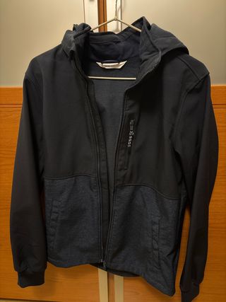 Chaqueta deportiva con capucha, ideal para actividades al aire libre. - Interior de forro polar. - Cierre de cremallera frontal. - Bolsillo con cremallera en el pecho. - Puños elásticos.