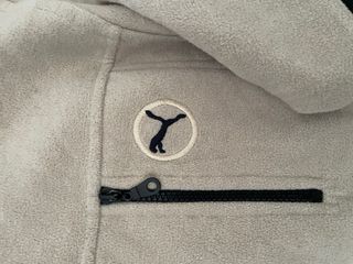 Polar Puma de color beige con un diseño deportivo y moderno. Ideal para un estilo casual. - Cierre completo con cremallera. - Bolsillo con cremallera en el pecho. - Rayas negras en las mangas.