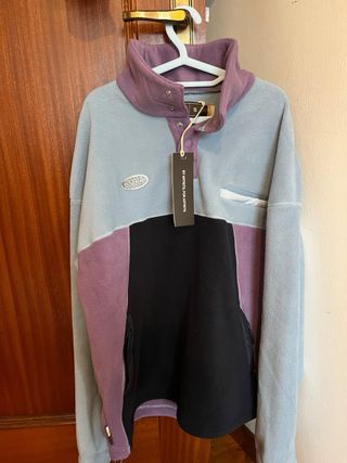 Jersey de cuello alto con media cremallera y detalles de color. - Diseño con paneles marrones en hombros. - Puños y bajo con rayas amarillas. - Bolsillo lateral con cremallera. - Logo de la marca en el pecho. Medidas Ancho: 53cm Largo: 65cm