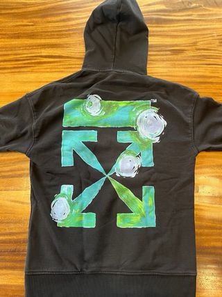 Sudadera con capucha de la marca OFF-WHITE. - Color negro. - Bolsillo frontal tipo canguro. - Logo de la marca en la parte delantera. - Envio en 24h📦 - Antes de ser enviada se planchara para que el cliente este satisfecho con el producto.